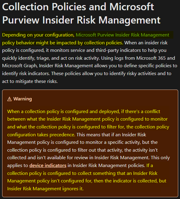 Collection Policy and Insider Risk Policy Conflicts